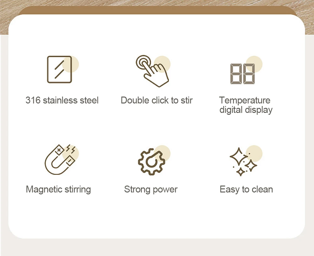 THOUGHTFUL DESIGN: The ergonomic design of the handle makes it comfortable to hold and easy to operate. The sealing design of the sliding lid prevents ingredients from spilling during mixing and also makes it easy for users to sip at any time. You can also decide whether it is ready to drink based on the temperature displayed at the handle.